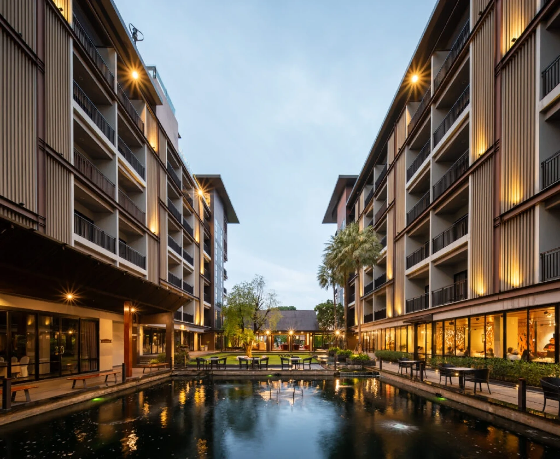 For digital nomads and business travelers, Amanta offers a co-working area and meeting rooms that fuse Japanese minimalism with Isaan charm. Think wooden panels, soft lighting, and traditional fabric patterns. Its peaceful, grounded, and surprisingly productive.